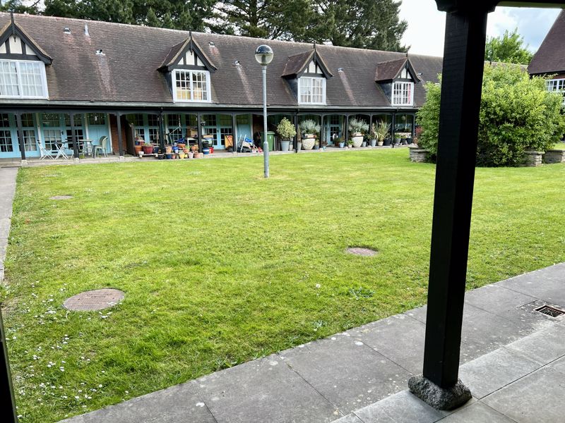 Similar paved pavilion terrace to the rear of the property with residents' lawn beyond.Residents' Parking