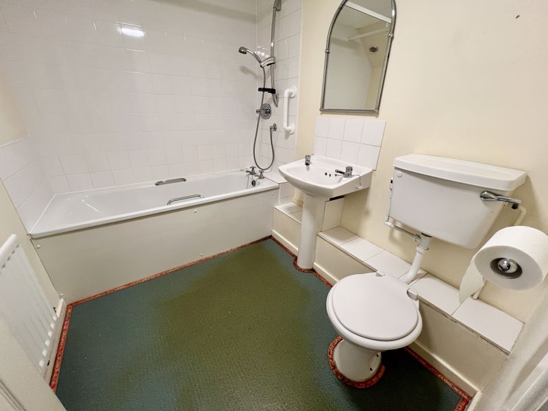 Double radiator, 2 windows overlooking communal forecourt, glazed door to the rear, built in shelved storage cupboard. Staircase leads to galleried Landing.Bathroom