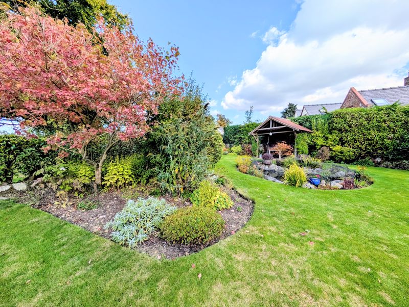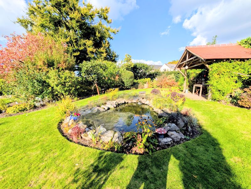 A beautiful feature of the property. Sitting on a large plot with well-maintained wrap-around gardens. To the side is a vegetable garden, and large lawns sweep around to the front. The garden is enclosed by fencing, hedging and original sandstone wall, providing great privacy. There is a large Tarmacadam drive with shrub borders, trees and high hedging, leading around to the Garage and main entrance. From the French doors in the Living Room, access onto a stone/concrete patio with gravel bed, perfect for outdoor dining. To the rear of the property is ample parking, a further lawn with shrub beds and pond. There is a timber garden room with pitched tile roof.Potting Shed